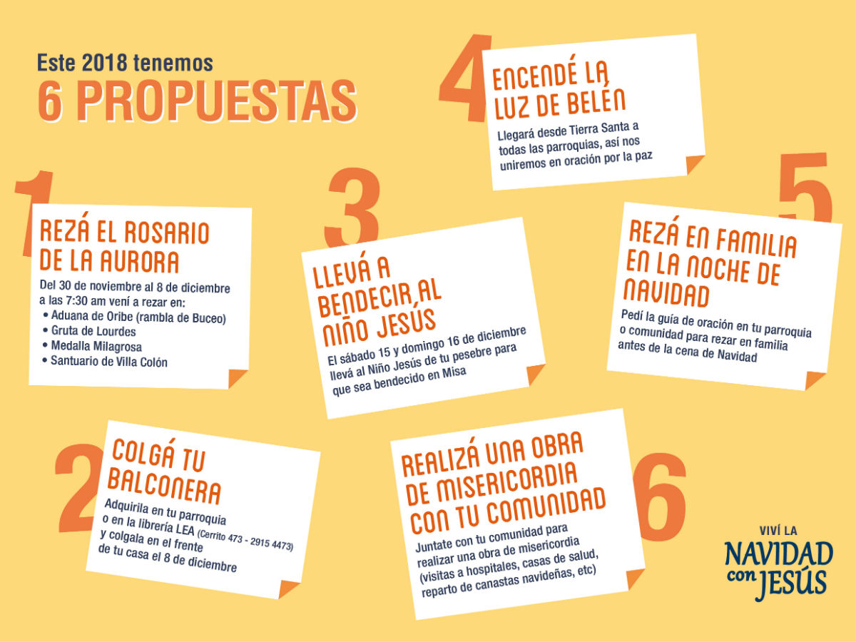 En quinto término, la Iglesia Católica de Montevideo invita a todas las familias a rezar en la Nochebuena. En breves comenzará la distribución (por internet y en los templos) de la oración sugerida.