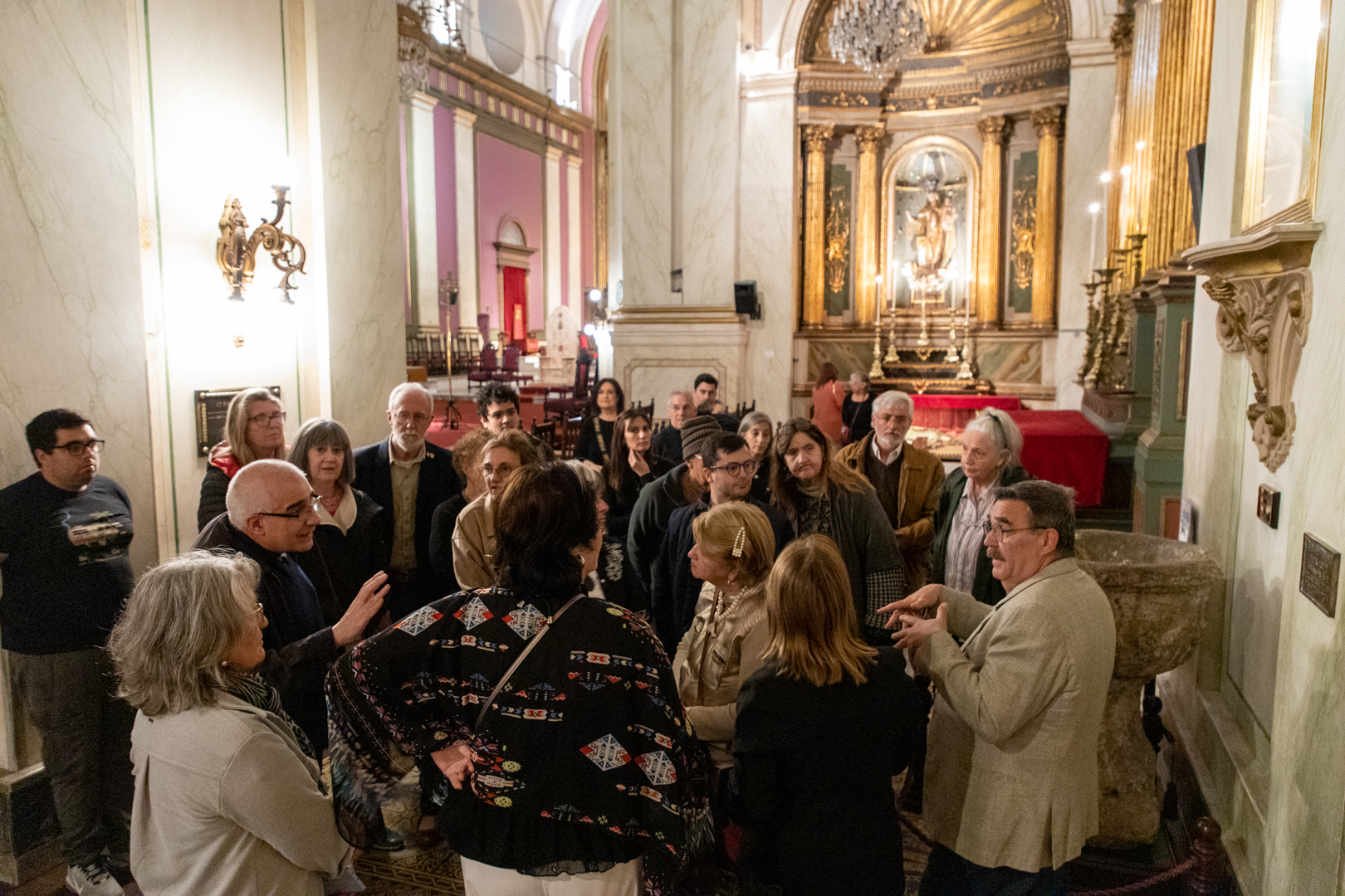 Se acercaban las dieciocho horas del sábado 18 de noviembre y, en la explanada del Templo Inglés, un par de decenas de curiosos —algunos con sus cámaras en mano— se convocaron para conocer la institución. Era solo el comienzo del itinerario; en las inmediaciones, un bus los esperaba para continuar la recorrida por varios templos más.