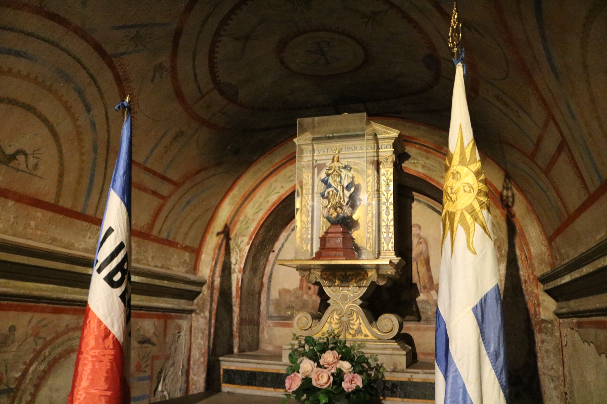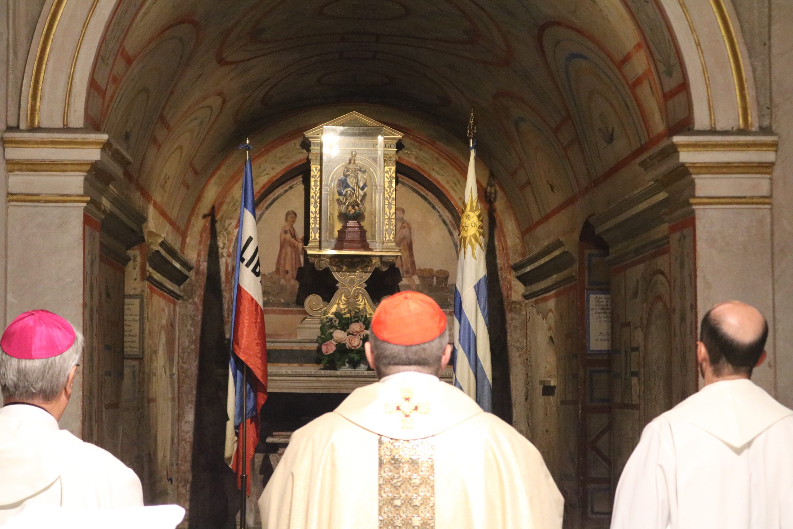 La Misa fue ante la imagen de la Virgen de los Treinta y Tres, a pocos metros de donde reposan los restos de los apóstoles San Felipe y Santiago. Fuente: C. Bellocq