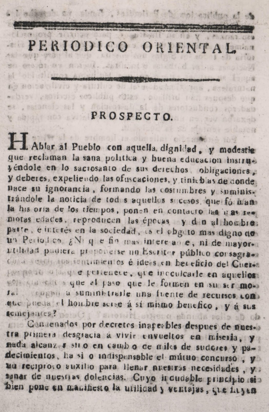 “Por lo tanto incite V. S. por medio del periódico a los paisanos que con sus luces quieran coadyuvar a nuestros esfuerzos, excitando en los paisanos el amor a su país y el mejor deseo por ver realizado el triunfo de la libertad”. Por todo esto, se considera que el escrito del prócer del 23 de octubre fue el auténtico comienzo de los medios de información en el país.
